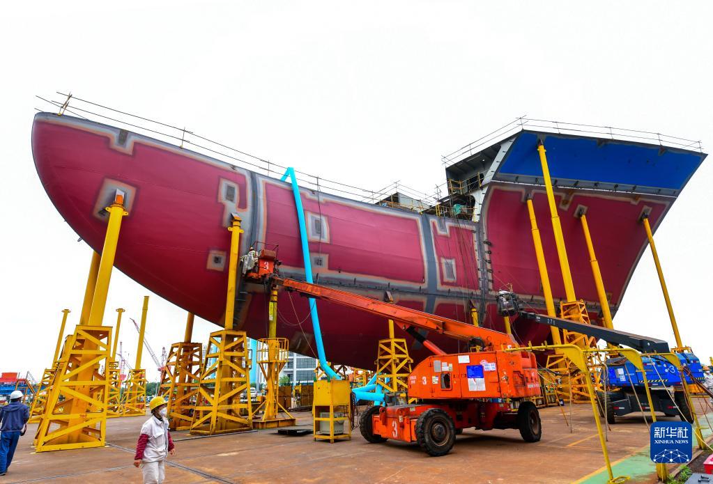 5月7日,扬州中远海运重工有限公司工人在作业。