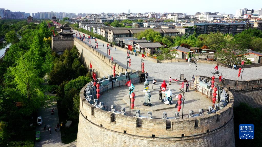 西安城墙西南城角(4月15日摄,无人机照片)。
