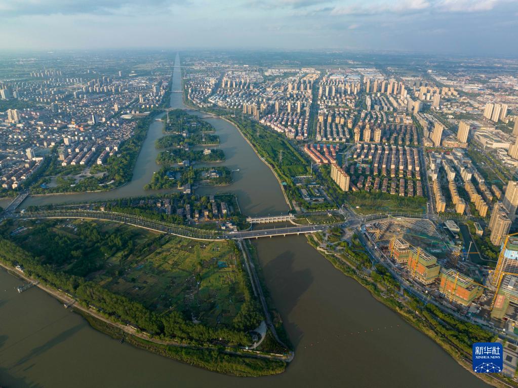 5月7日在江苏省扬州市拍摄的江都水利枢纽(无人机照片)。