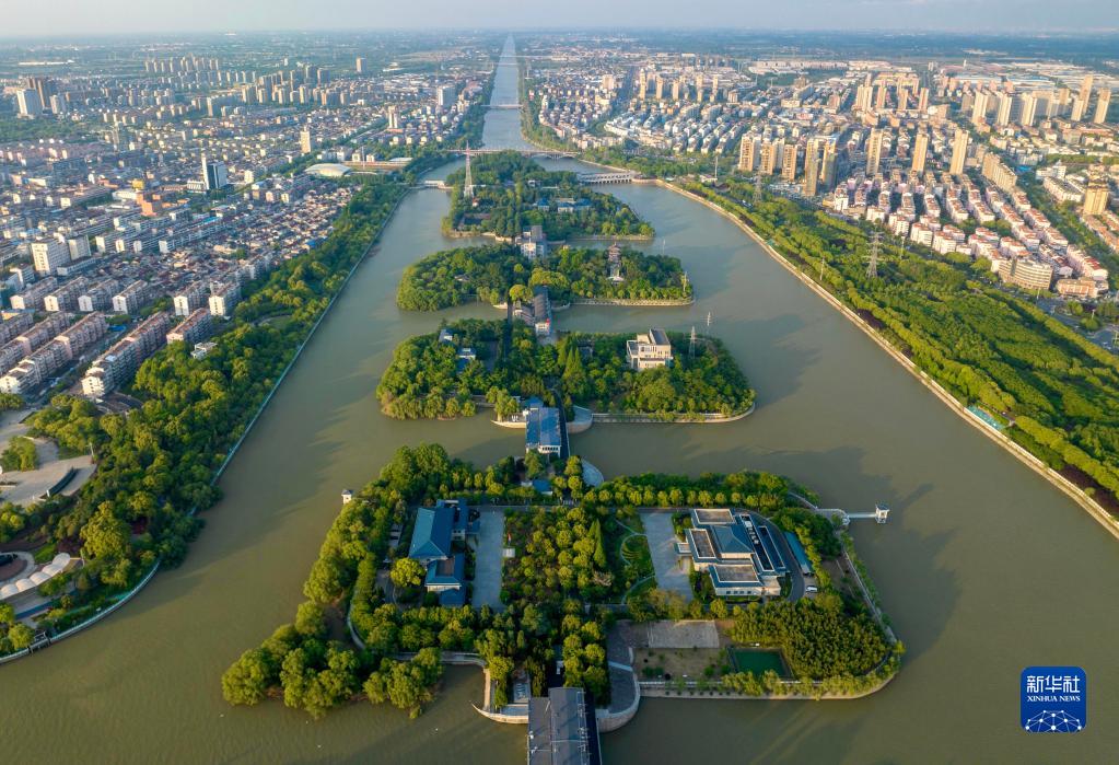 5月7日在江苏省扬州市拍摄的江都水利枢纽(无人机照片)。