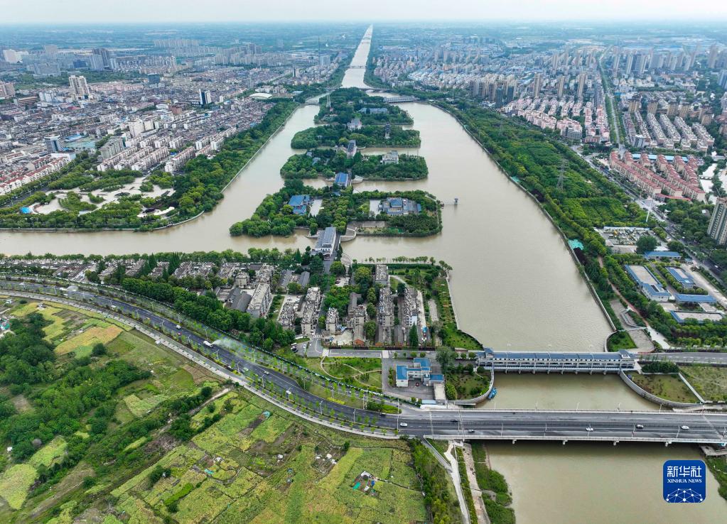 5月7日在江苏省扬州市拍摄的江都水利枢纽(无人机照片)。