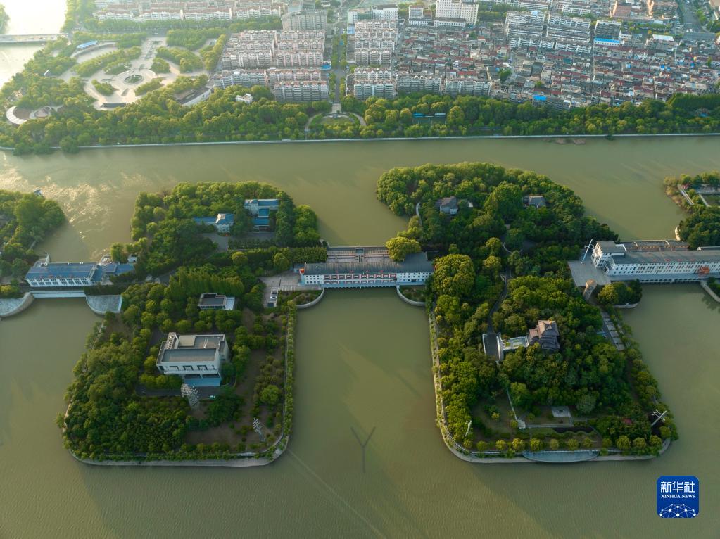 5月7日在江苏省扬州市拍摄的江都水利枢纽(无人机照片)。