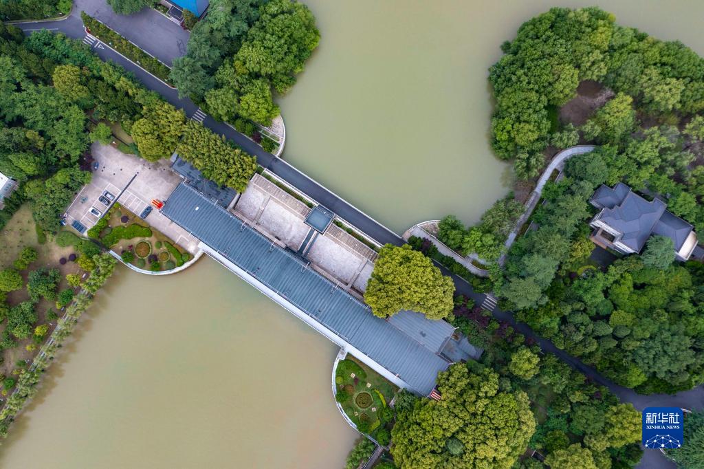 5月7日在江苏省扬州市拍摄的江都水利枢纽(无人机照片)。