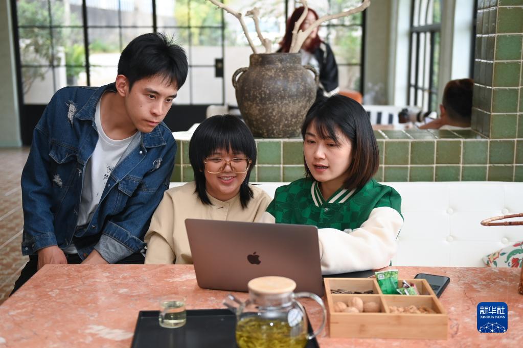 5月8日,在德清县莫干山镇高峰村,“弥宫”民宿主姚荪芳(右一)与工作人员讨论为客户定制的婚礼方案。