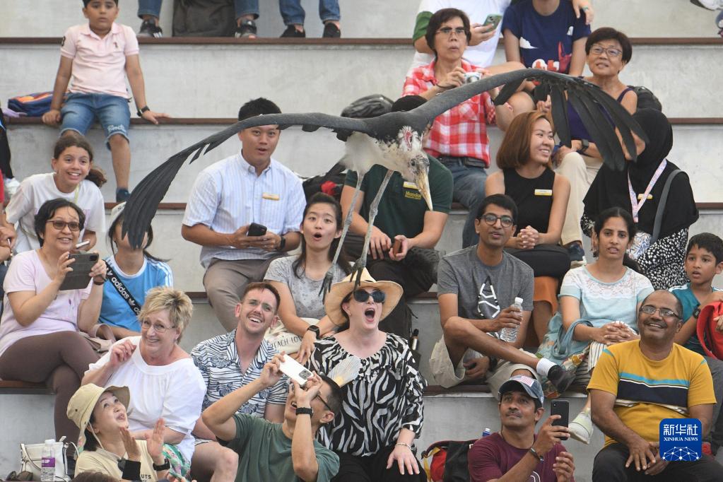 5月8日,观众在新加坡飞禽公园开放当天来到园内欣赏飞禽表演。