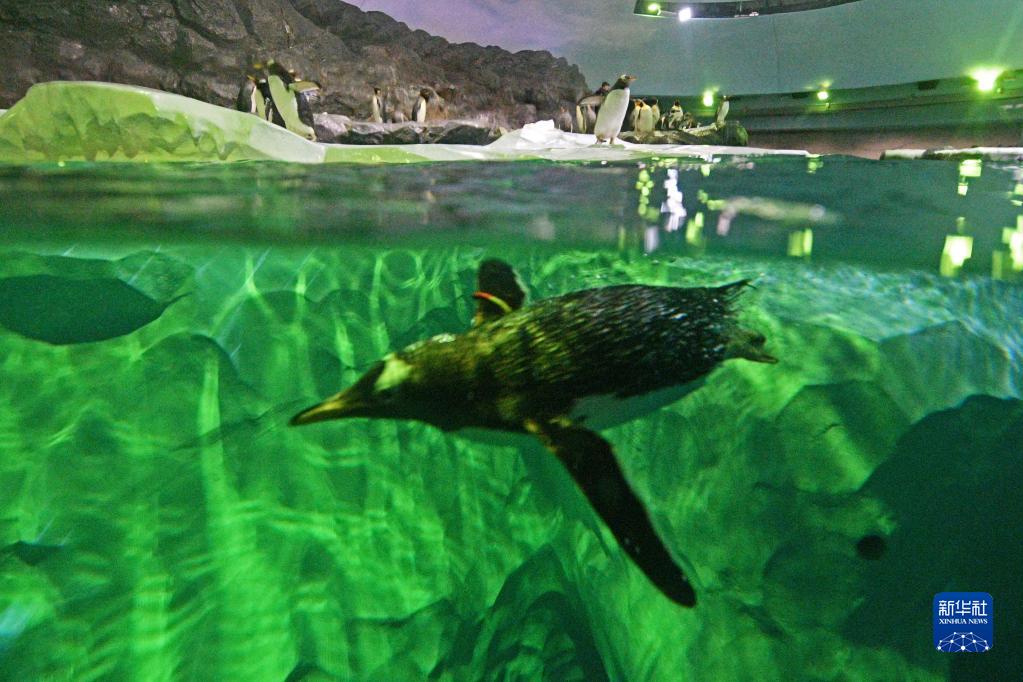 这是5月8日新加坡飞禽公园开放当天拍摄的潜水的企鹅。