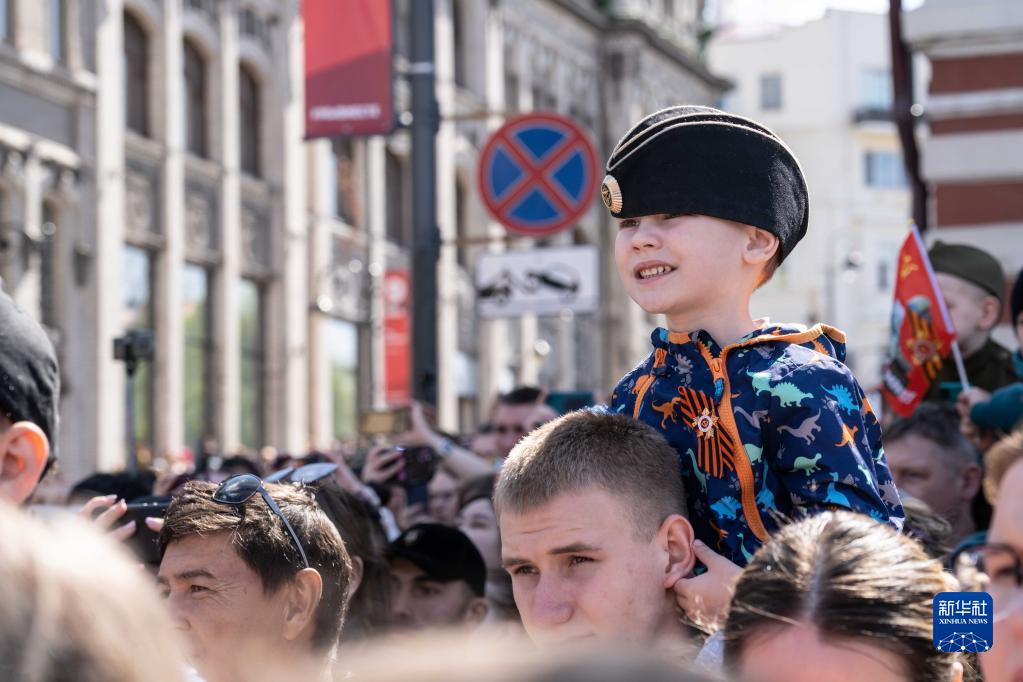 5月9日,人们在俄罗斯符拉迪沃斯托克市观看阅兵式。