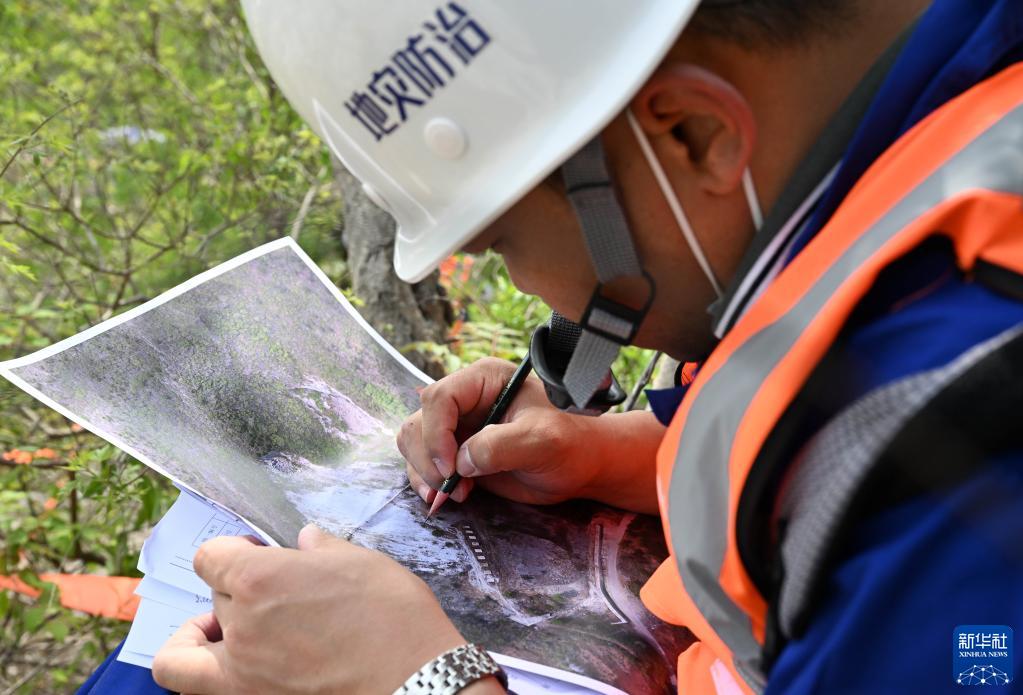 5月9日,在偏桥子滑坡地质灾害隐患点,参赛选手标记滑坡体信息。