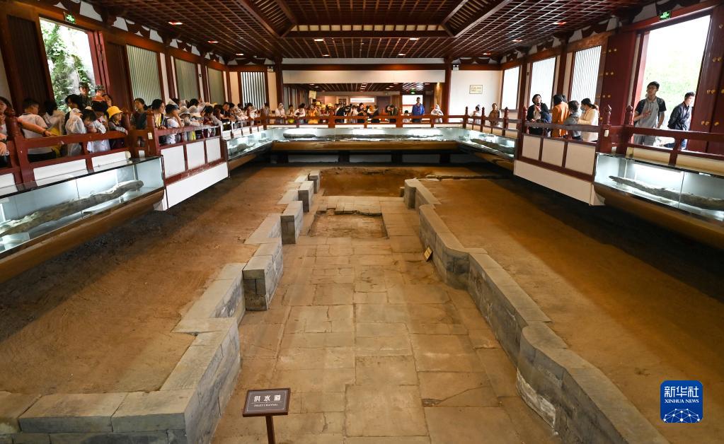 游客在西安华清宫景区星辰汤参观游览(5月5日摄)。