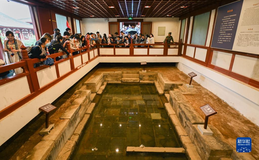 游客在西安华清宫景区尚食汤参观游览(5月5日摄)。