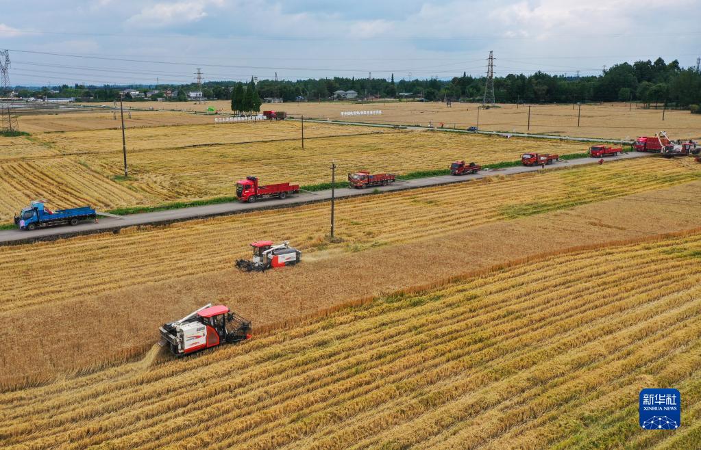 目前,四川省各地农民抢抓农时,进行夏收、夏种、夏管等作业。