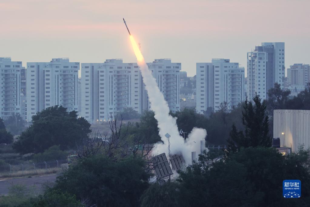 5月10日,以色列“铁穹”防御系统在以色列南部城市阿什克隆发射拦截导弹。