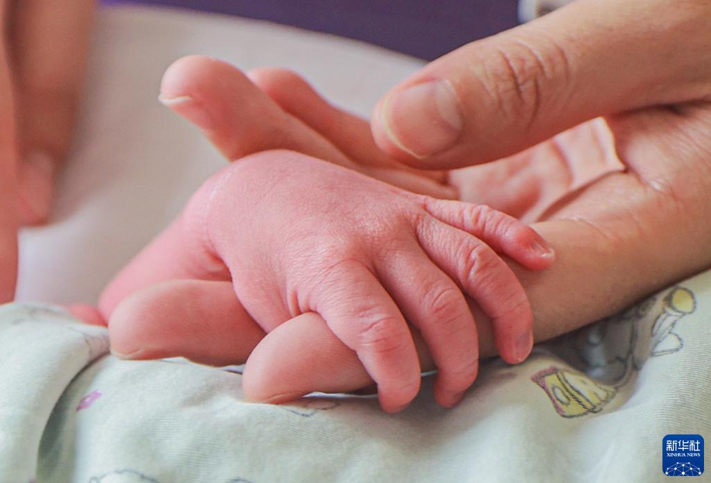 5月11日,在山东省荣成市妇幼保健院新生儿重症监护室,医护人员为新生儿进行观测、护理。