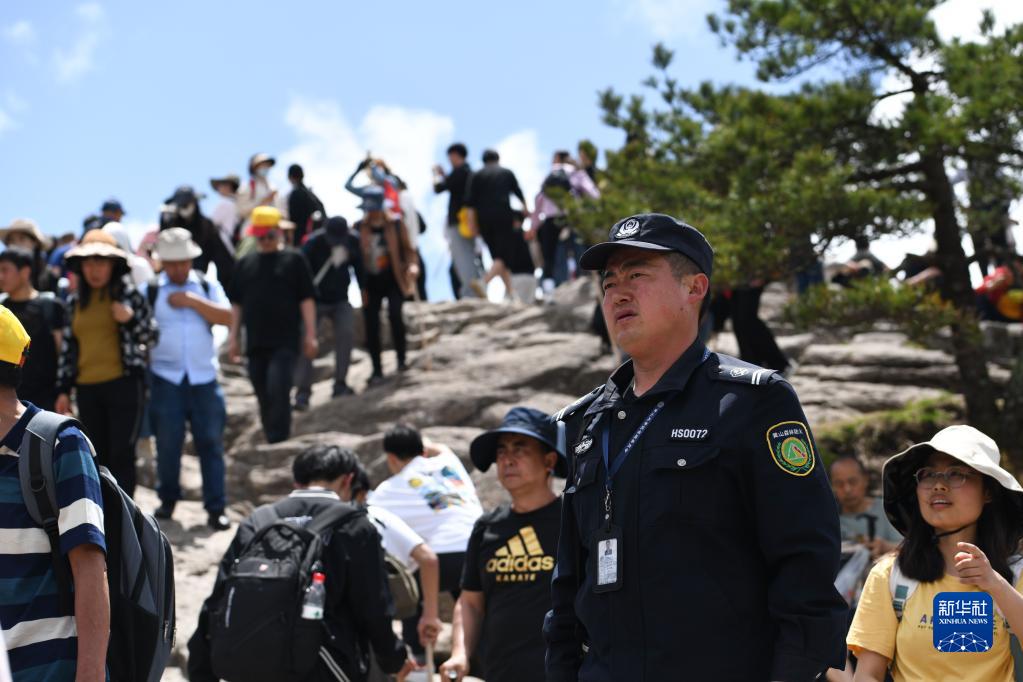 4月20日,秦志平在黄山风景区光明顶附近进行路段巡查。
