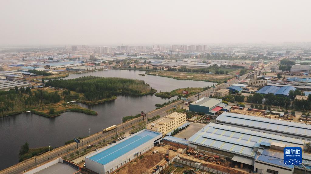 5月11日拍摄的河北省文安县左各庄镇人造板制造服务创新示范区一角(无人机照片)。