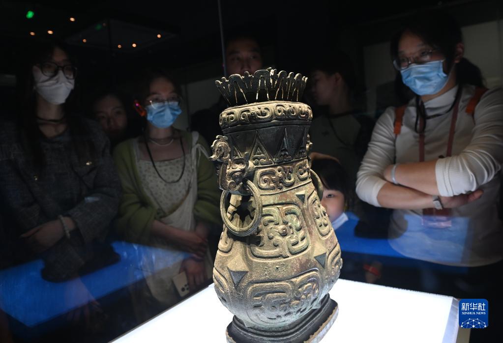5月11日,游客在陕西历史博物馆参观馆藏西周文物梁其壶。