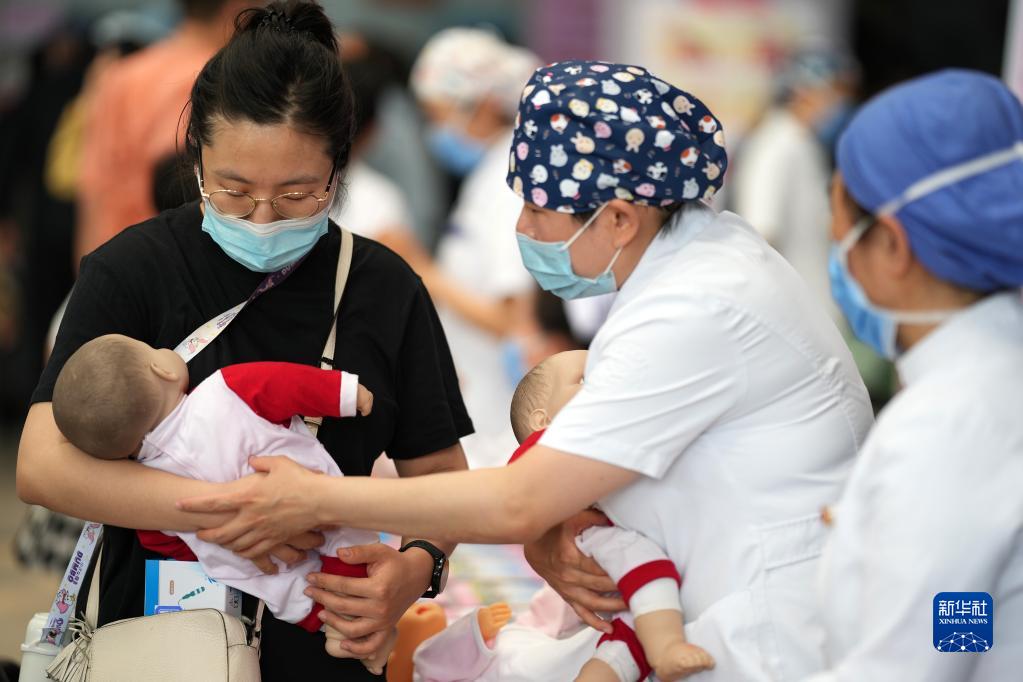5月12日,护理专家在首都医科大学附属北京妇产医院东院区的健康咨询活动上介绍母乳喂养相关知识。