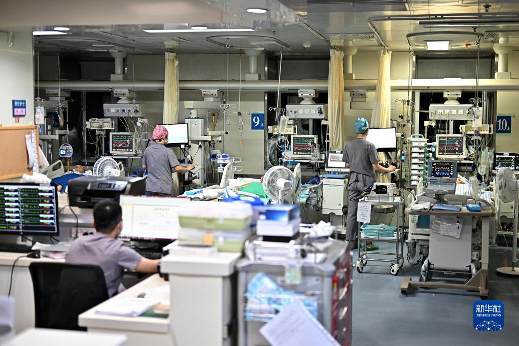 5月11日4时许,北京协和医院内科重症监护病房(MICU)内,医护人员在工作。