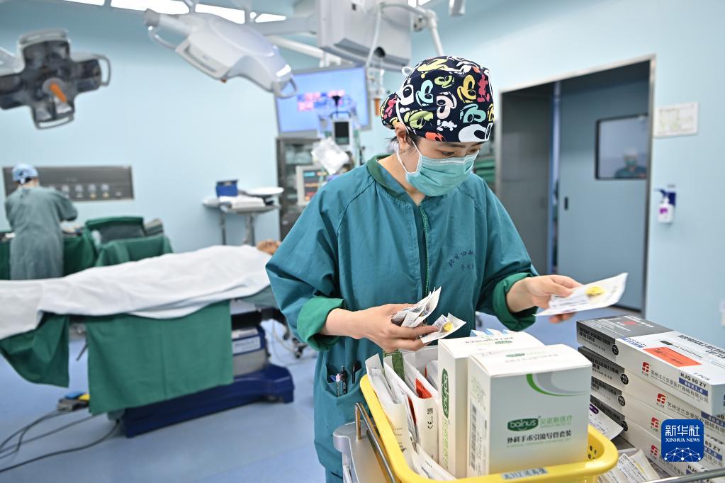 5月11日8时许,北京协和医院手术室护士刁翠翠在手术间核对术中所需物品。