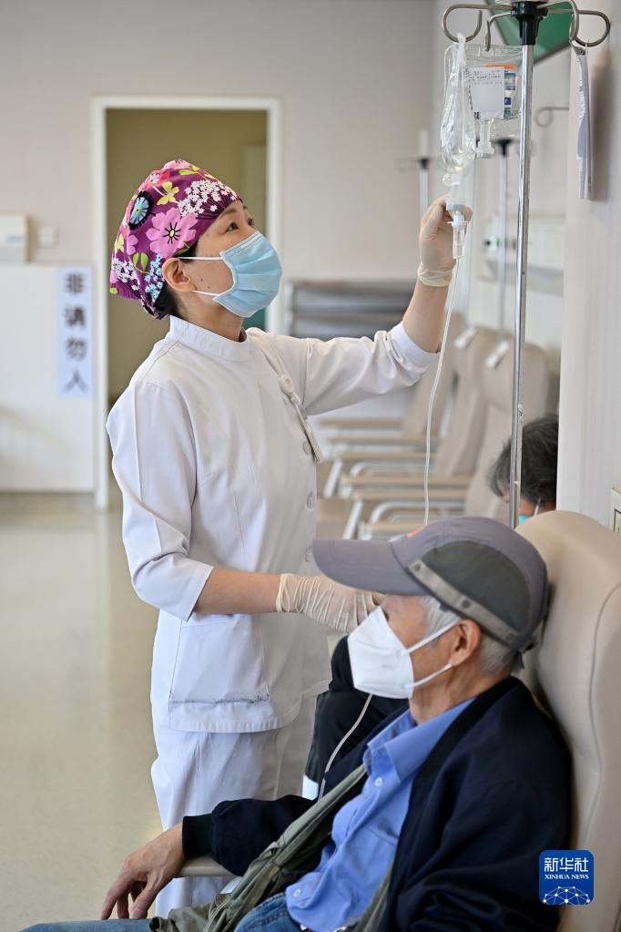 5月9日9时许,北京协和医院门诊治疗室护士付亚丽查看病人输液情况。