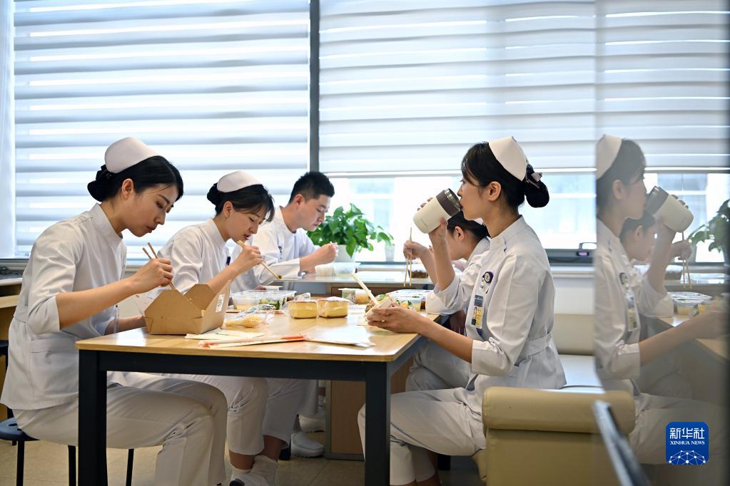 5月9日11时许,北京协和医院国际医疗部护士在办公室吃午饭。