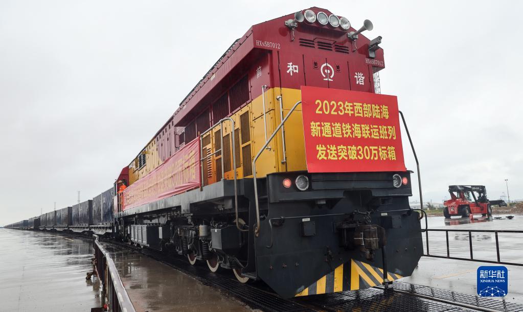 5月11日,一列装载东盟货物的火车从广西钦州铁路集装箱中心站开出,预计3天后到达重庆团结村站,这标志着西部陆海新通道铁海联运货物突破30万标箱。