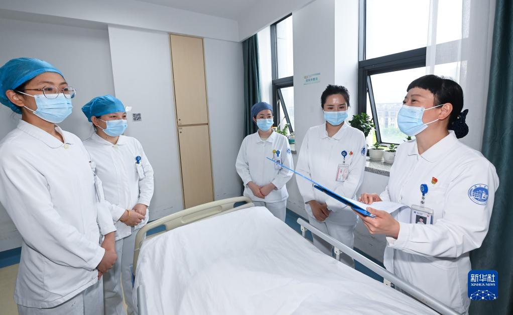 5月11日,浙江医院医疗照护病房安宁疗护护理团队在查房。