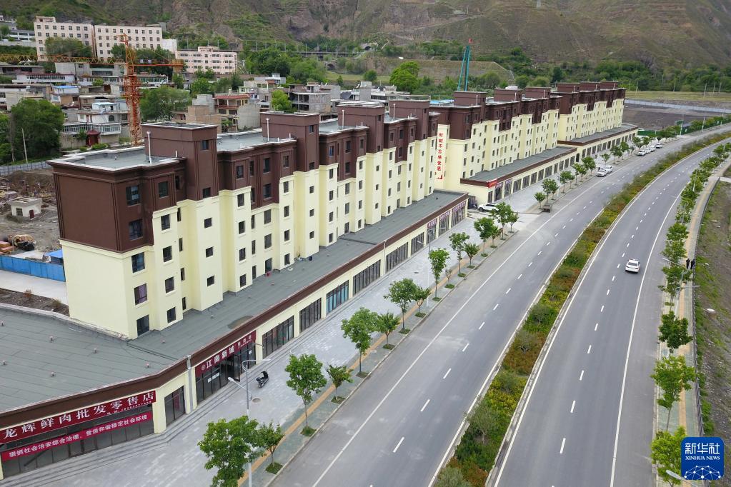 这是5月9日在甘肃省陇南市宕昌县拍摄的已入住的宕昌县沙湾镇生态及地质灾害避险搬迁安置房(无人机照片)。
