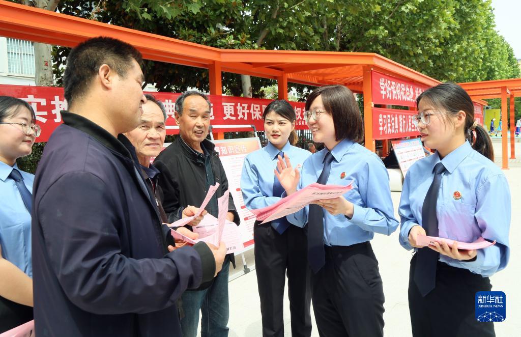 5月12日,在河南省洛阳市汝阳县政府广场,汝阳县检察院女检察干警向群众宣传民法典。