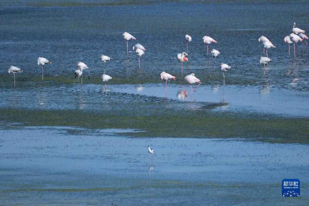 5月8日,火烈鸟在西班牙富恩特皮埃德拉湖栖息。