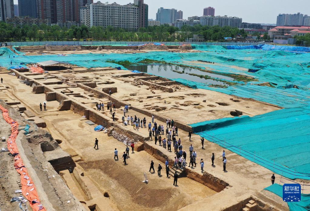 5月13日,与会专家学者在郑州书院街遗址进行学术考察(无人机照片)。