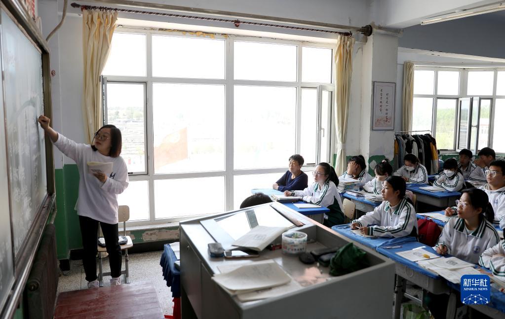 张连琴和女儿李昕伟在教室内听课(5月8日摄)。