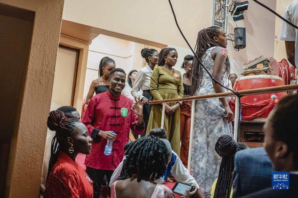 5月12日,在肯尼亚内罗毕大学,汉语桥参赛选手在后台交流。