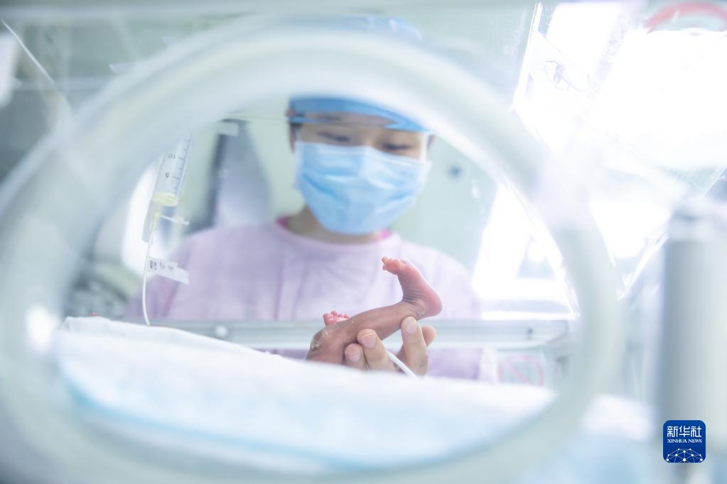 5月9日23时许,北京协和医院新生儿重症监护病房(NICU)护士杨楚嘉查看早产儿情况。