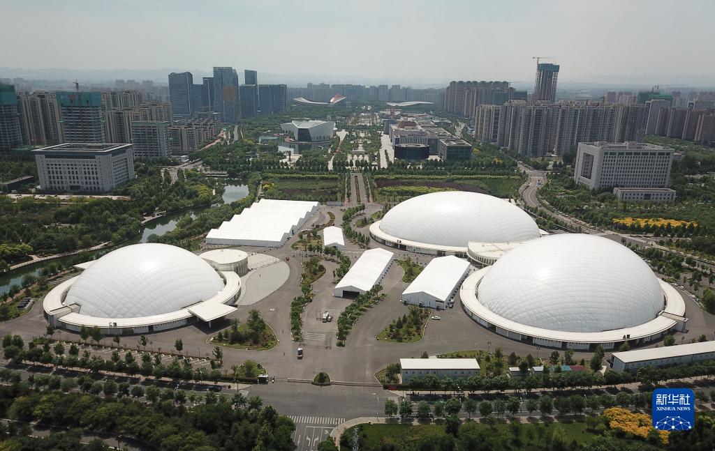 位于淄博市张店区的淄博会展中心(5月8日摄,无人机照片)。