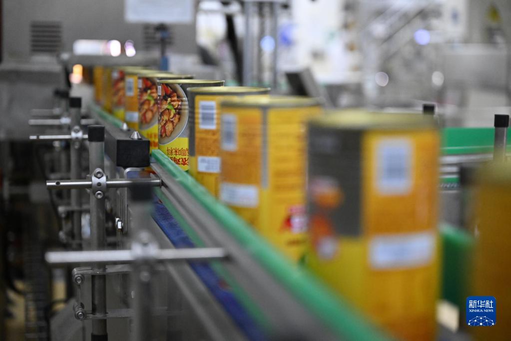 在联合利华天津食品工厂黑灯车间,调味料产品在智能生产线上传输(5月11日摄)。