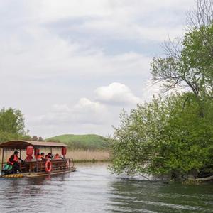 初夏时节,位于黑龙江省牡丹江市的镜泊湖世界地质公园内山清水秀,美丽的风光吸引游客前来游玩。