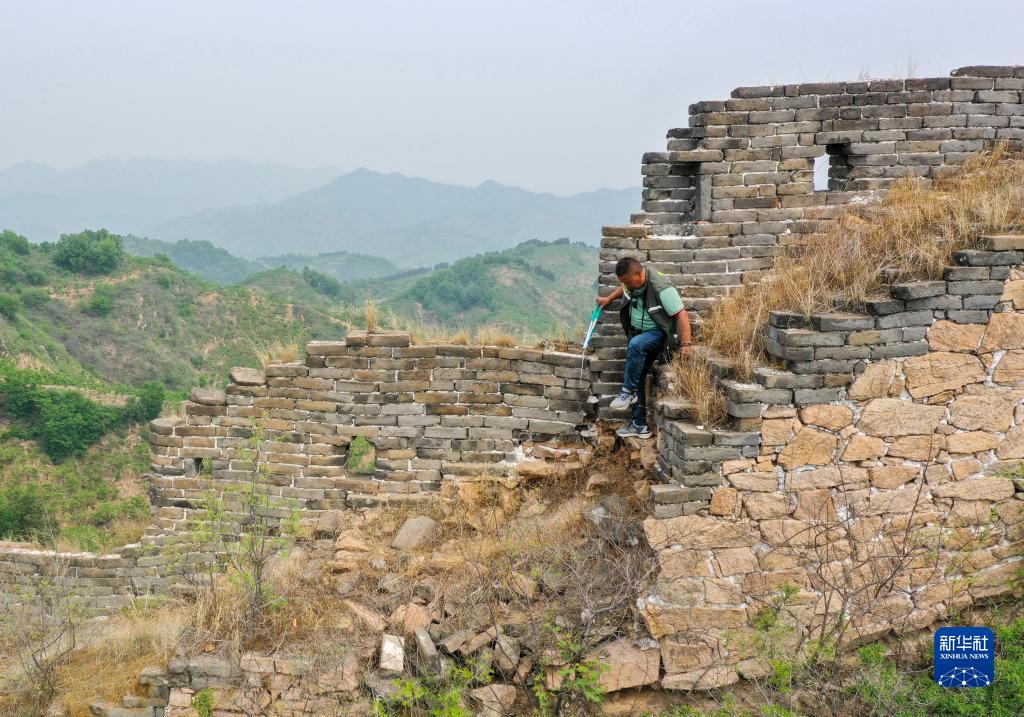 赵春生负责守护的明长城约5公里,其中有敌楼5座,烽火台4座。每隔两三天,他就要上山巡查,清理垃圾、杂草,捡拾并垒砌风化掉落的长城砖。夏日酷暑难耐,冬季寒风刺骨,能够用脚步丈量长城,见证长城的四季变化,为保护文化遗产尽一份力,赵春生乐在其中,感到非常自豪。