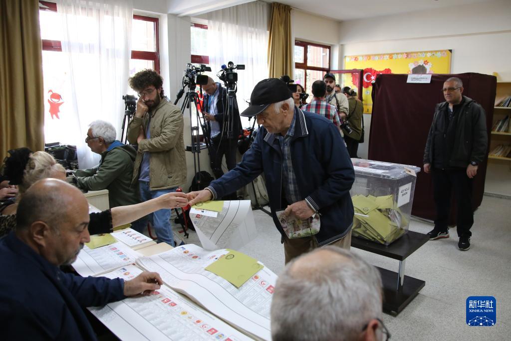 5月14日,在土耳其安卡拉,民众在一处投票站参加投票。