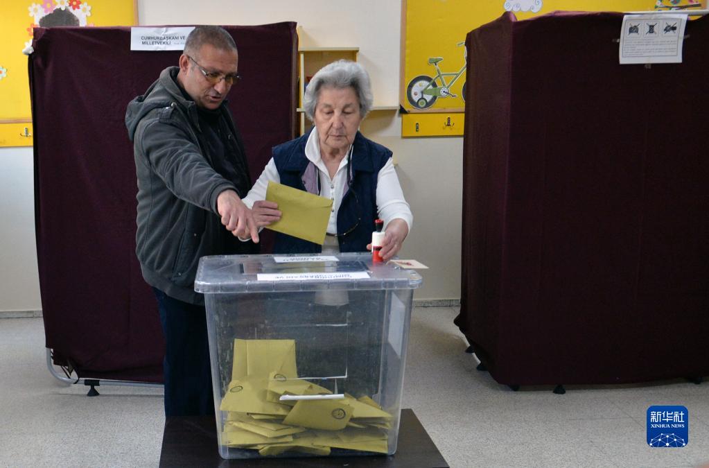5月14日,在土耳其安卡拉,民众在一处投票站参加投票。