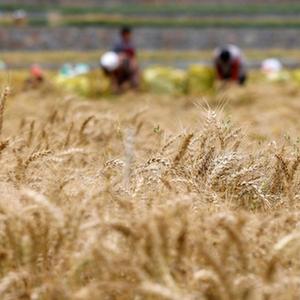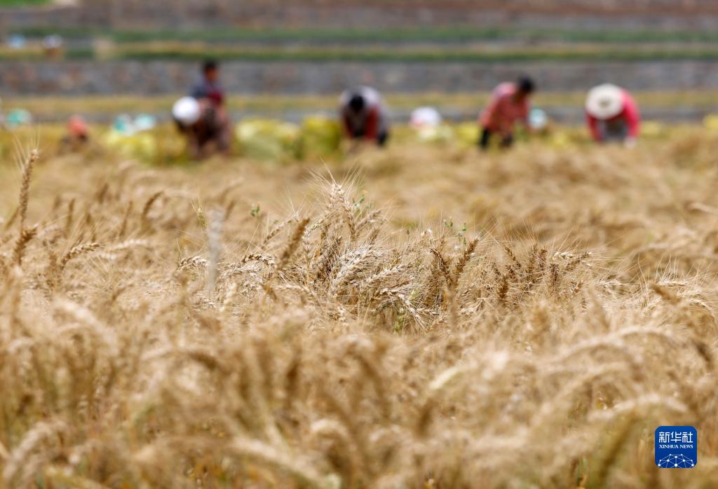 5月14日,农民在贵州省遵义市正安县安场镇胜利社区收割小麦。
