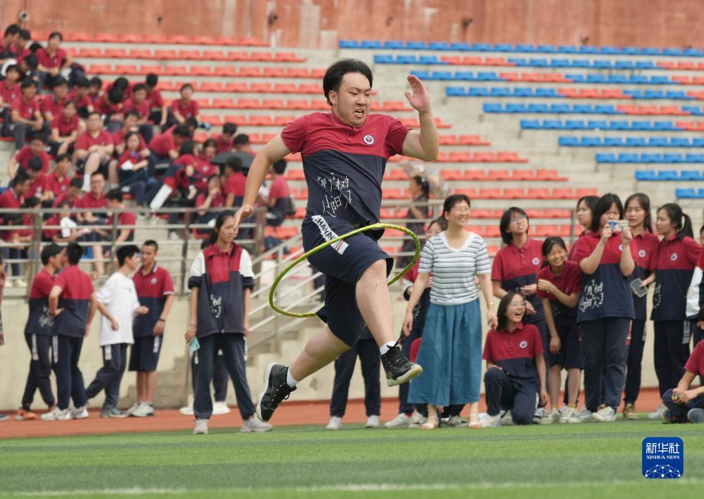 高考临近,重庆市北碚区朝阳中学在做好高三学生复习备考的同时,开展多种形式的集体减压活动、趣味活动,帮助高三学生释放紧张情绪、放松身心,让学生以平和、乐观自信的心态迎接高考。新华社发(秦廷富 摄)