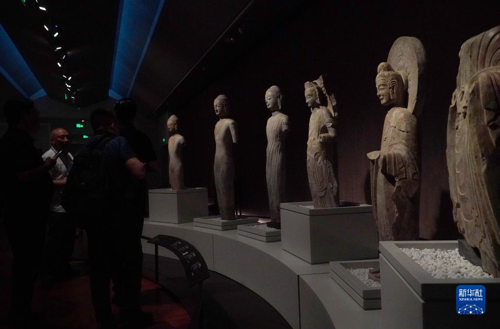 5月15日,在山东省青州博物馆新馆,1996年龙兴寺遗址窖藏出土的佛教造像正在进行展出。
