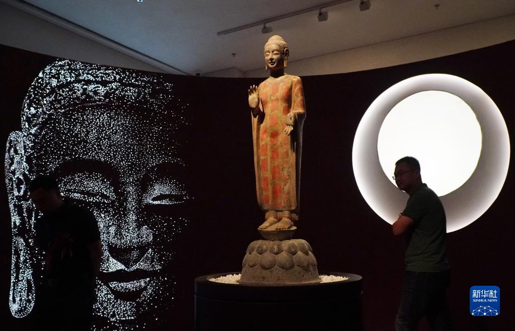 5月15日,在山东省青州博物馆新馆,1996年龙兴寺遗址窖藏出土的佛教造像正在进行展出。