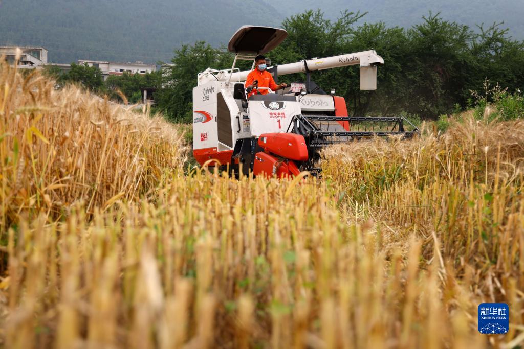 近日,贵州省遵义市正安县安场镇迎来小麦收获季,农民抢抓农时收获小麦,田间地头一派繁忙。