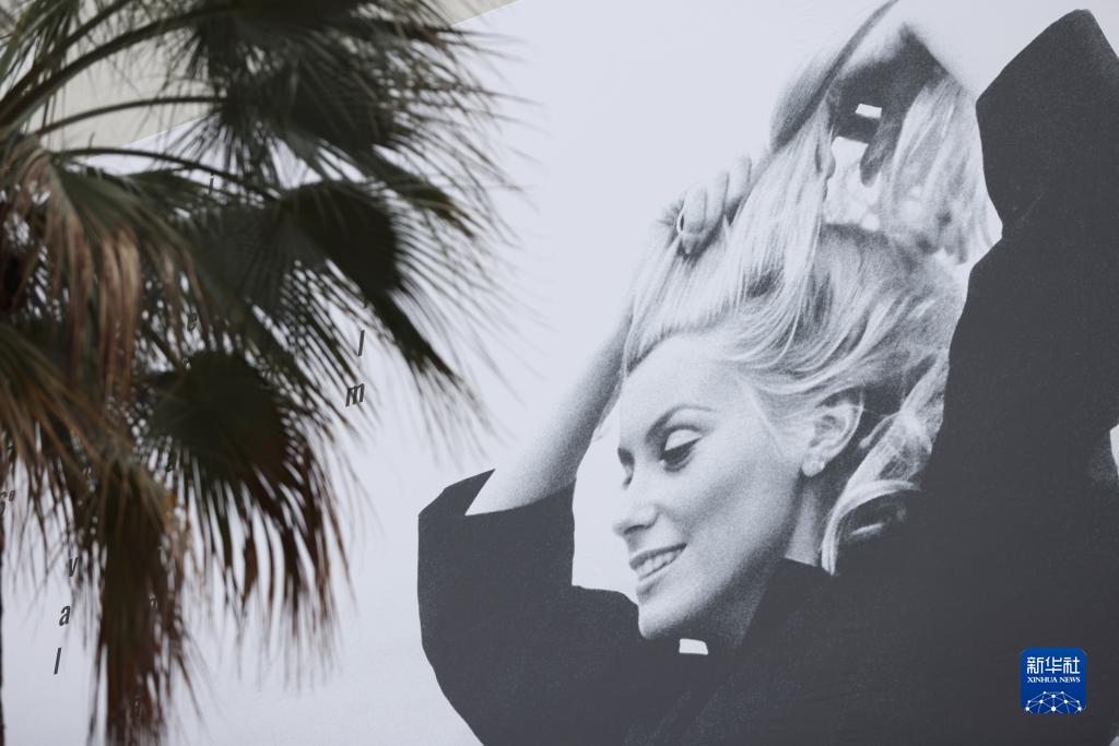 这是5月15日在法国南部海滨城市戛纳电影宫外拍摄的戛纳国际电影节海报。