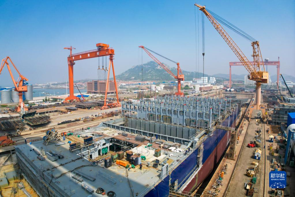 5月15日拍摄的青岛造船厂作业场景(无人机照片)。