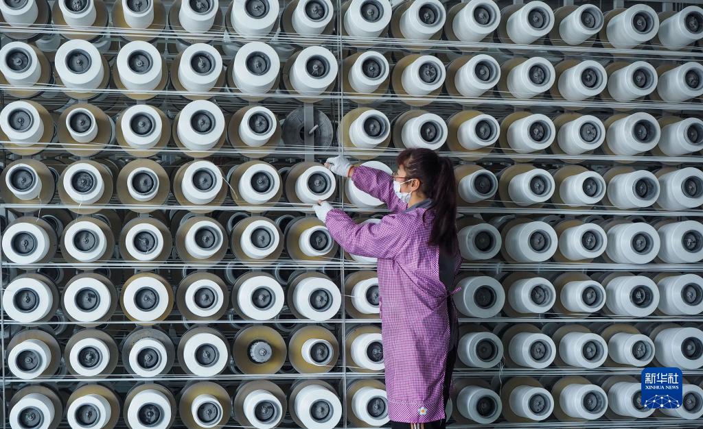 5月15日,山东省青岛市即墨区段泊岚镇一家篷布生产企业的工人在织布车间生产出口到海外市场的产品。