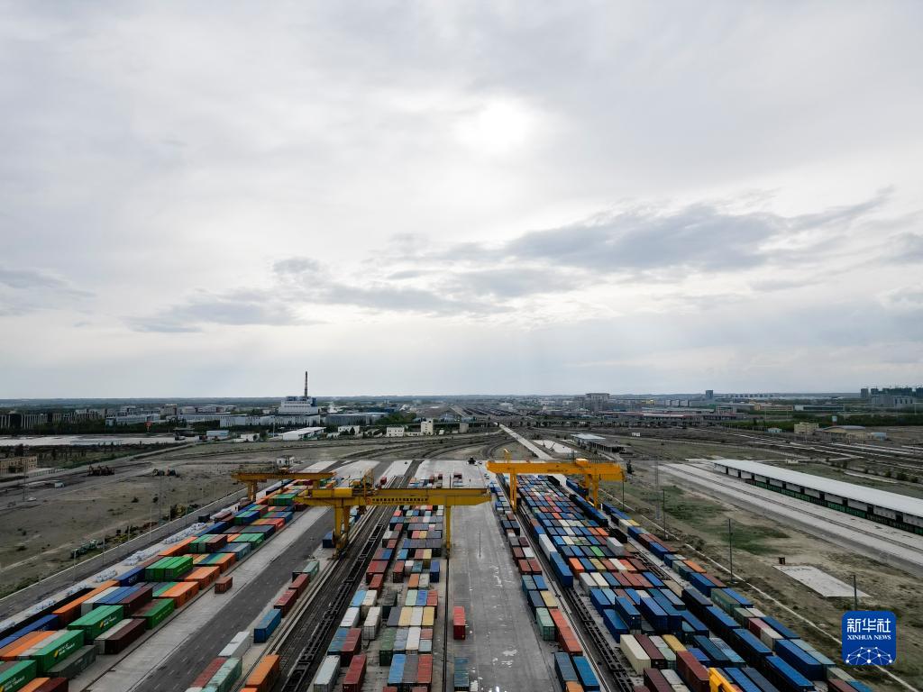 5月14日拍摄的霍尔果斯铁路口岸换装场(无人机照片)。