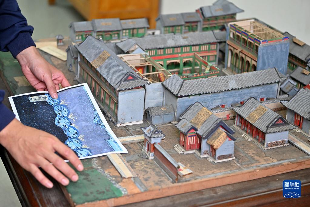 5月16日,国博文保院修复师向媒体记者介绍圆明园同乐园建筑群样式雷烫样文物材质、构造等内容。